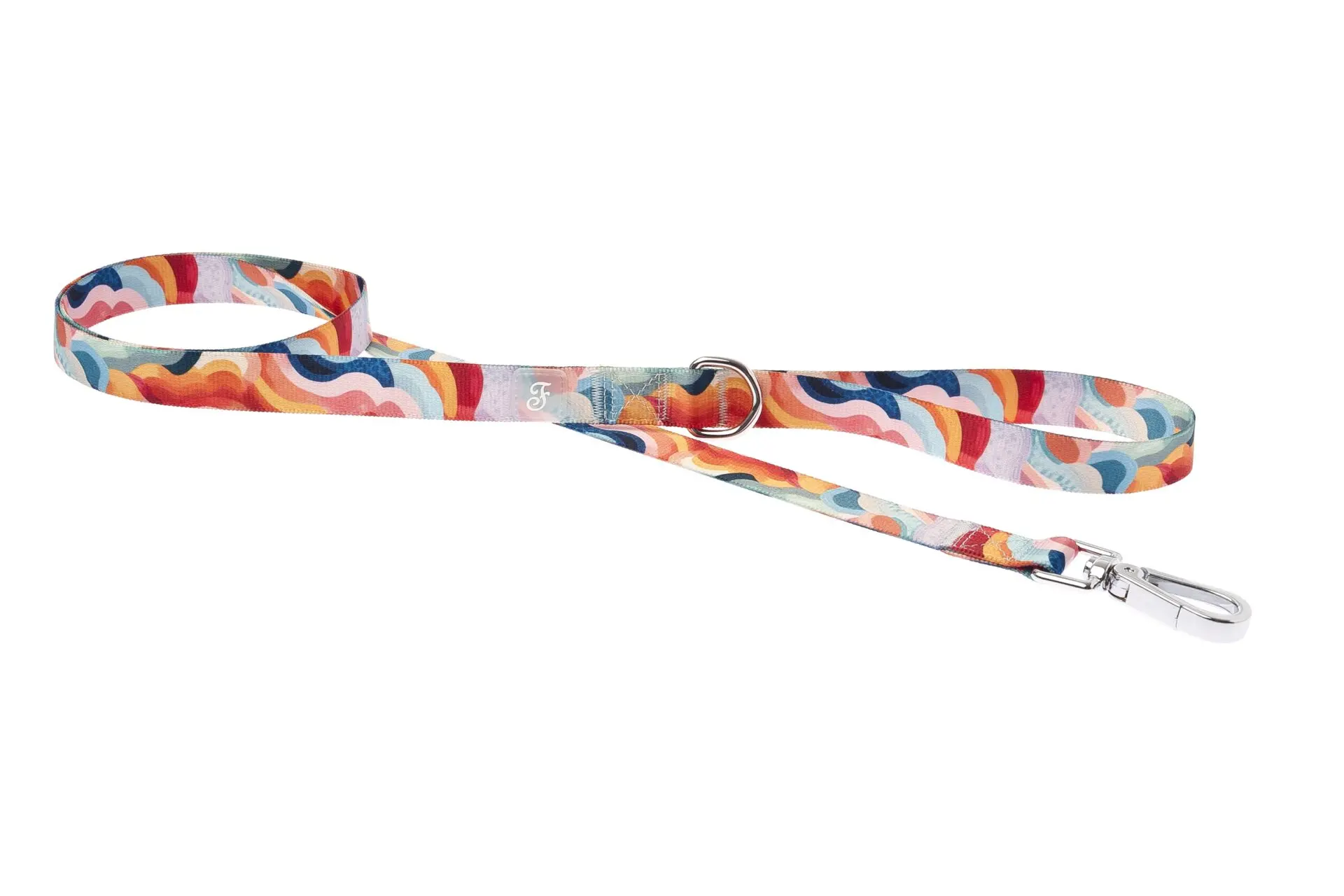 Ten wzór przyciąga spojrzenia. Abstrakcyjne fale w kolorach koralu, turkusu, żółci i granatu tworzą kompozycję pełną energii i lekkości. Srebrne, błyszczące okucia dodają całości elegancji. To smycz, która pasuje do każdej maści psa i… do Twoich najlepszych stylizacji.