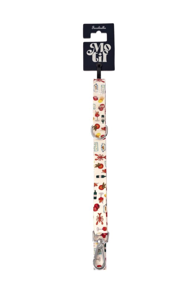 To wzór dla smakoszy! Na smyczy przeplatają się motywy homara, wina, spaghetti, cytryn i pomidorów. Prawdziwa włoska uczta w wakacyjnym wydaniu.
