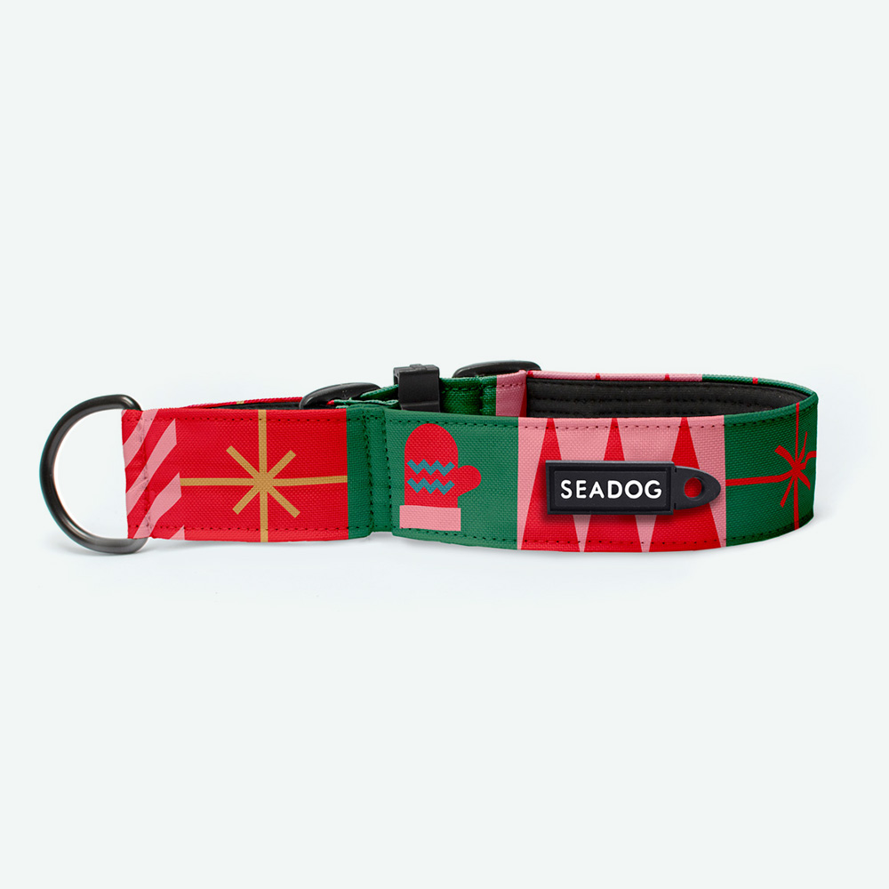 Szeroka obroża półzaciskowa dla charta (4 cm) – Wzór “IT’S TIIIME!” (Świąteczna)