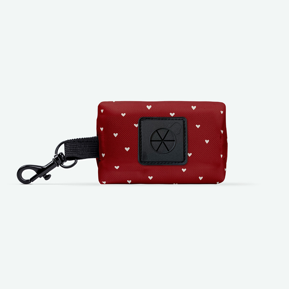 Tak jak w saszetce na smaczki, postawiliśmy tu na elegancję. Głębokie, bordowe tło zdobią subtelne, beżowe serca. Dzięki temu etui pasuje zarówno do smyczy w szachownicę, jak i do każdego innego elementu z tej kolekcji. Wygląda jak stylowy brelok, a nie pojemnik na worki. Pamiętaj, że każdy egzemplarz jest szyty ręcznie, więc ułożenie wzoru może być unikatowe!