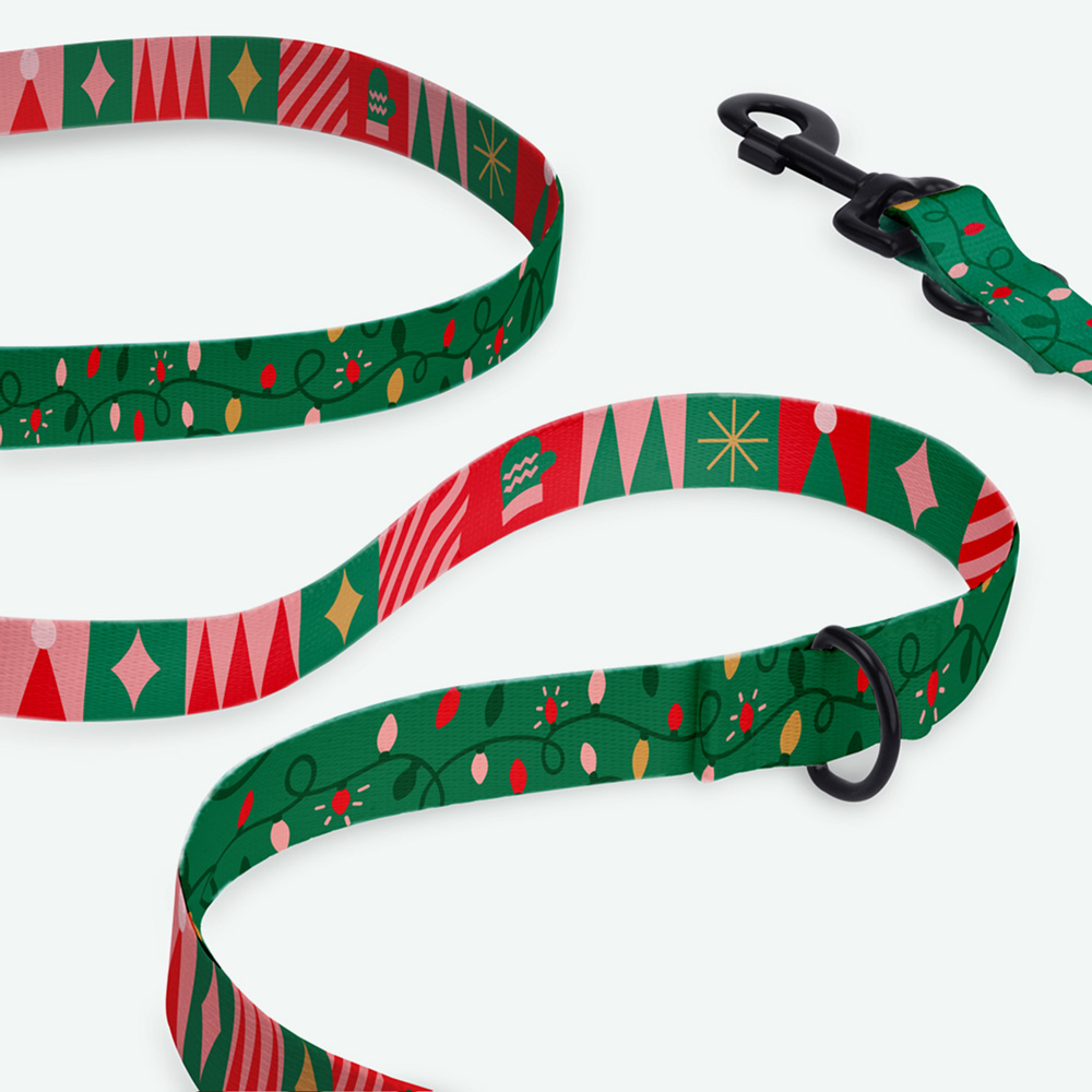 Smycz przepinana dla psa – Wzór “IT’S TIIIME!” (Świąteczna Geometria)