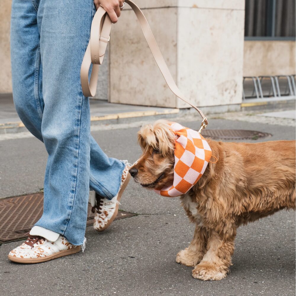Snod dla psa – zimowy – kratka pomarańczowa