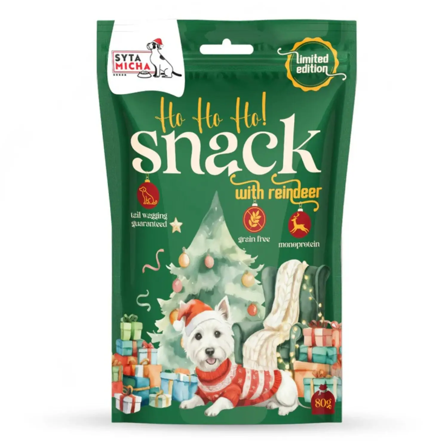 Ho, ho, ho! Czy Twój pies był w tym roku grzeczny? Jeśli tak, zasłużył na coś więcej niż zwykłego smaczka. Przedstawiamy HO HO Snacks od Sytej Michy – ekskluzywny, świąteczny rarytas z mięsa renifera. To kulinarna podróż do Laponii, zamknięta w paczce pełnej zdrowia.