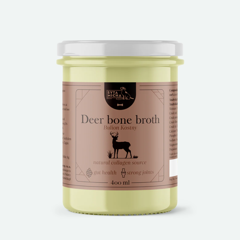Syta Micha: Bulion z Kości Jelenia dla Psa (400 ml) – Dziki Superfood na Stawy