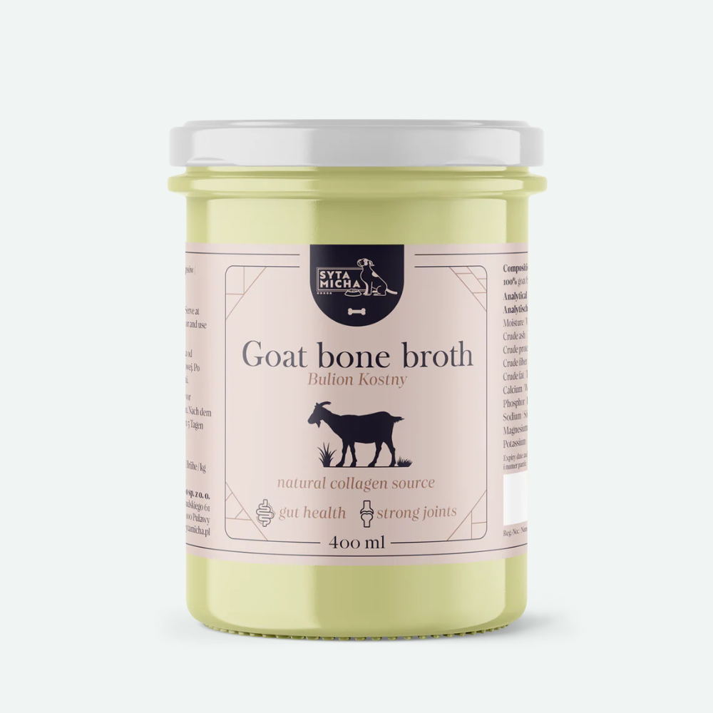 🐐 Syta Micha: Bulion z Kości Kozy dla Psa (400 ml) – Wyjątkowy Kolagen dla Alergików i Niepewnych Brzuszków