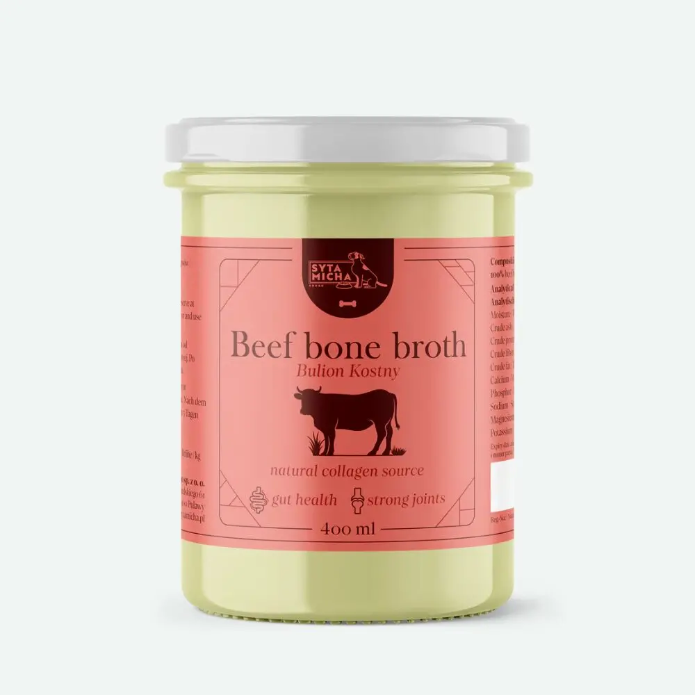 🥩 Syta Micha: Bulion z Kości Wołowych dla Psa (400 ml) – Naturalny Eliksir dla Stawów i Odporności
