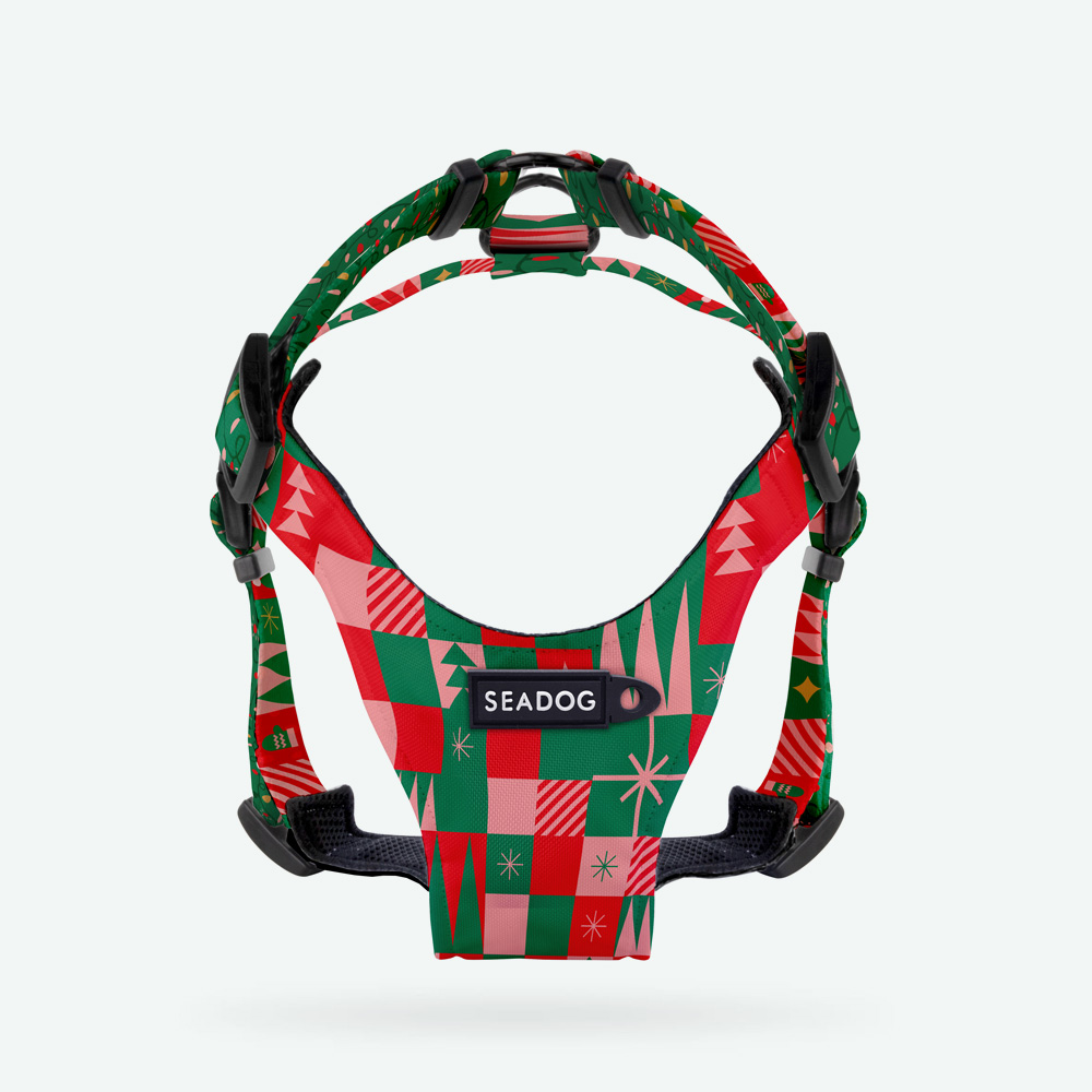 Szelki bezuciskowe dla psa – Wzór “IT’S TIIIME!” (Edycja Świąteczna)