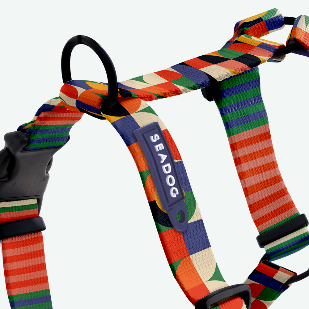 Szukasz najbezpieczniejszych szelek dla psa (typu Guard), które łączą ergonomiczną konstrukcję z modnym, geometrycznym wzorem? Nasz model od SEADOG to perfekcyjne połączenie anatomicznej budowy z artystycznym designem Bauhaus. Zapewnij swojemu psu lub kotu maksimum komfortu i pełną kontrolę na spacerach.