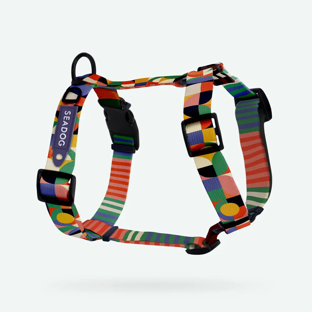 Szukasz najbezpieczniejszych szelek dla psa (typu Guard), które łączą ergonomiczną konstrukcję z modnym, geometrycznym wzorem? Nasz model od SEADOG to perfekcyjne połączenie anatomicznej budowy z artystycznym designem Bauhaus. Zapewnij swojemu psu lub kotu maksimum komfortu i pełną kontrolę na spacerach.