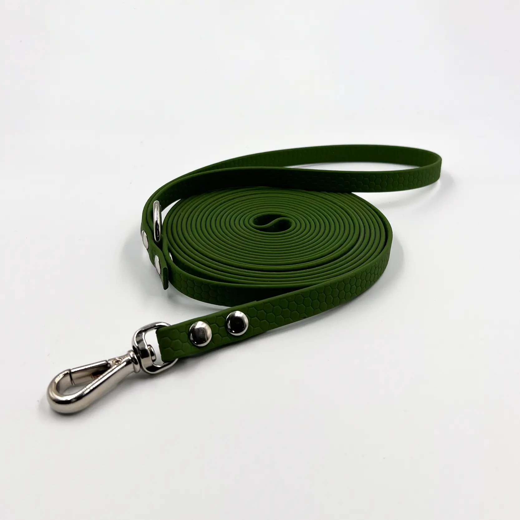 Nasza smycz treningowa została wykonana z nowoczesnego tworzywa o strukturze plastra miodu (Hexa). To materiał, który eliminuje największe wady tradycyjnych smyczy parcianych i skórzanych.
